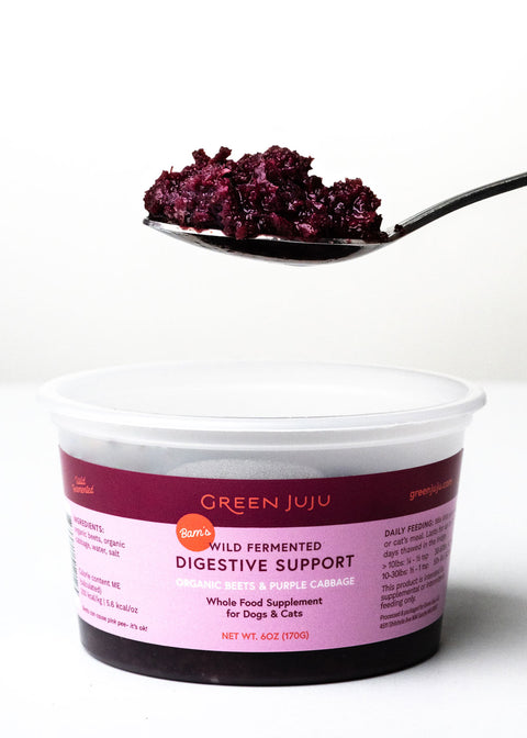 Having a resilient microbiome acts like an anchor in times of change, helping the body respond appropriately to stressors and maintain balance. Feeding your pet Green Juju’s wild fermented foods, like Bam’s Beets and Lua’s Golden Paste, along with our whole food probiotics, provides a rich source of beneficial bacteria to nourish and strengthen the foundation of this internal ecosystem.
