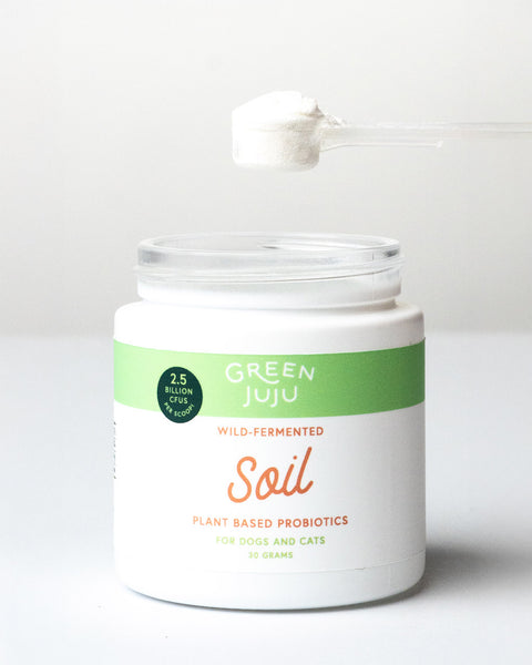 One of my go-tos for everyday support is Green Juju’s Soil Wild-Fermented Probiotic, a plant-based, broad-spectrum probiotic made from organic dark leafy greens. Designed to reconnect pets with nature’s microbial blueprint, it delivers a rich diversity of beneficial bacteria from natural soil microbes to support gut balance and digestive resilience.