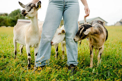 Our raw goat’s milk comes from a cooperative of 15 small family farms in Pennsylvania, where goats roam open pastures, bask in the sunshine, and live as nature intended. Every farm follows rigorous human-grade standards, including biweekly testing, to ensure uncompromising quality.